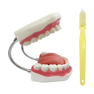 ➤Made of high quality Polyvinyl chloride (PVC) material, tasteless, durable, corrosion resistant and environmentally friendly. Molded from a durable material, complete with 32 adult teeth and a moveable tongue ➤Size: 6 times enlarge normal dental teeth model with tongue included, SIZE: 8.66* 5.9* 5.5 inches ➤The model has 32 teeth, which includes 8 incisors, 4 Canines, 8 Premolars, 8 Premolars, 8 Molars and 4 Wisdom teeth ➤Flexible Spring enable easy opening and closure of Upper Jaw and bendable mouth for easy demonstration. Great teaching tool and best gift for dentist, more clear for kids, students ➤The product helps children get a preliminary understanding of the basic structure and function of teeth, understand the importance of dental health and help develop a good habit of caring for teeth