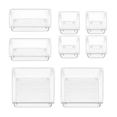 Crystal Clear & Durable Plastic Construction: Crafted from high-quality, transparent plastic, these makeup drawer organiser trays are both sturdy and lightweight. Their clarity allows you to see your items at a glance, while the durable material ensures they will last for years to come. Multi-Size Set for Complete Customisation: This versatile set includes organisers in multiple sizes (e.g., 15.5x15.5cm, 15x7.5cm, 7.5x7.5cm). Mix and match them to create a perfect make up drawer organiser system that fits your unique drawer dimensions and holds everything from lipsticks to palettes. Maximise Drawer Space & Eliminate Clutter: Transform any messy drawer into a model of efficiency. These clear desk organiser inserts are designed to maximise every inch of space. Keep your bedroom dresser, office supplies, kitchen cutlery, or bathroom toiletries neatly sorted and instantly accessible. Effortless to Clean & Maintain: The smooth, non-porous surfaces can be quickly wiped clean with a damp cloth. Spills from makeup, creams, or food are no longer a problem, making hygiene and maintenance incredibly simple. Versatile for Every Room in Your Home: More than just a cosmetic organiser, this set is the ultimate storage solution. Use the trays to organise jewellery, stationery, art and craft supplies, tools, screws, and first-aid items in any room—from the home office and kitchen to the garage and bathroom.
