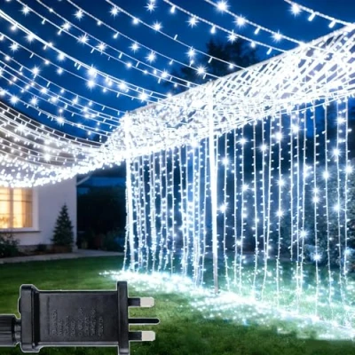 600 LEDs & 6M Extra-Wide Coverage - Featuring 24 strings with 25 LEDs each, this 6m x 3m curtain light delivers double the density of standard 300LED sets. Ideal for covering large living room walls, panoramic windows, or long garden fences with a single, seamless string. 8 Modes & Intelligent Memory Function - Create your ideal bedroom aesthetic or a romantic wedding backdrop with 8 lighting modes. The built-in memory chip retains your last setting, so there’s no need to reset the mode daily—excellent for permanent wall decor and event setups. Energy-Saving Timer & Easy Operation - Activate the smart timer (6h ON/18h OFF) with a simple double-press on the plug button. This efficient, hands-free operation is designed for daily use in gazebos, pergolas, or commercial spaces, ensuring your lights glow exactly when needed. Safe to Touch & UK Weather Ready - Mains powered with a low 31V transformer, these lights stay cool to the touch, making them safe for homes with children or pets. The IP65 waterproof design and 3M lead wire make them reliable for UK gardens and spring weather conditions. Linkable Design for Large Venues - Commercial-grade linkable feature allows you to connect up to 4 sets for a continuous 24-meter display. Great for large-scale projects like wedding marquees, shop fronts, and patio boundaries. Package includes UK plug and manual.