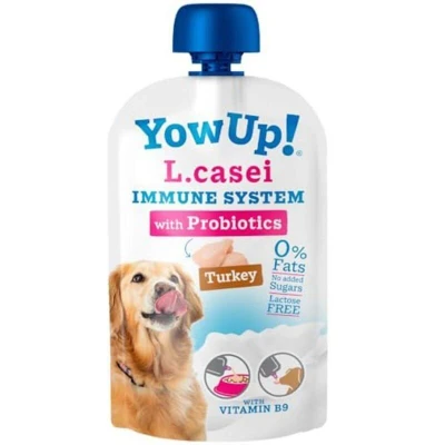 Enhance your dog's immune and digestive health with YowUp! Enriched with over a million L. Casei probiotics per serving, lactose-free and low in fat. Convenient, no refrigeration needed, and perfect as a topping or snack. Fortified with vitamins E, D3, and B9 for optimal vitality.