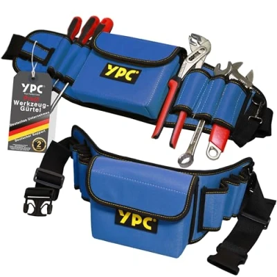 XXL dimensions: with its dimensions of 130 cm total length, the deep pockets, the hammer loop and the large 17 x 15 x 5 cm nail bag, the ProBelt offers plenty of space for your tools and other equipment. High quality: made from durable, waterproof Oxford 600D polyester, this belt defies the adversities of your everyday work and offers long-lasting quality. ORGANIZED: With seven generous holding loops, a spacious main pocket and a handy hammer loop, this belt keeps your tools organised and within easy reach. No more annoying searching – maximise your efficiency! Comfortable: the adjustable belt ensures optimal wearing comfort and a custom fit. So you can concentrate fully on your craft without distractions. Stylish: Choose from the trendy colours khaki, grey or blue and give your work outfit a personal touch. A belt that not only works, but also impresses. Professional tool: Whether you are a professional craftsman or passionate DIY enthusiast, our tool belt is the perfect companion for anyone who values organisation and efficiency., Weight: 0.9479877266 Pounds, Manufacturer: YPC