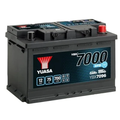 SPECIFICATIONS: 12V EFB High performance Battery; Capacity: 75 Ah; Startup Power (CCA): 700 Amps; Size (mm): 278 x 175 x 190; Weight (kg): 19.3; Brass terminals (Type 1) to enhance conductivity and optimise overall battery performance. UP TO 270,000 ENGINE STARTS: Built to withstand up to 270,000 engine starts, the Yuasa YBX7096 offers exceptional durability and long-lasting performance for modern vehicles. WIDELY COMPATIBLE: The Yuasa YBX7096 ensures reliable operation across various driving conditions and is compatible with various vehicle makes such as: Alfa Romeo, Audi, Fiat, Lancia, and Volkswagen & many more OPTIMISED FOR START-STOP TECHNOLOGY: Specifically designed for modern vehicles with advanced Start-Stop technology, this battery delivers efficient performance, making it the perfect choice for vehicles with frequent engine cycling. IDEAL FOR SHORT JOURNEYS & COMMERCIAL VEHICLES: The perfect choice for standard ignition vehicles that frequently make short trips, such as taxis and delivery vehicles, offering consistent power and reduced fuel consumption.