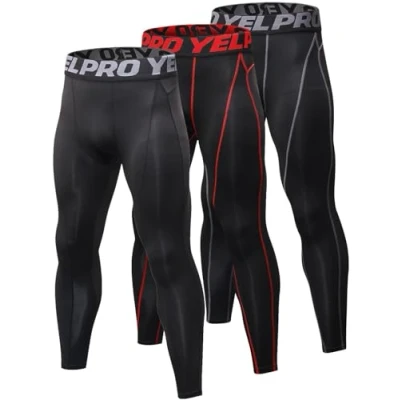 Yuerlian 3 Pack Mens Compression Leggings Training Cool Dry Sport Pants Running Gym Tights
