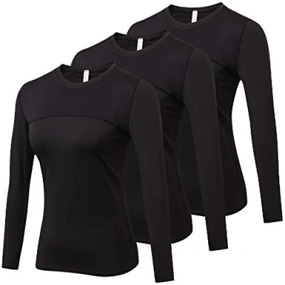 Yuerlian 3 Pack Womens Long Sleeve Performance Base Layer Running Training Top, Black, L