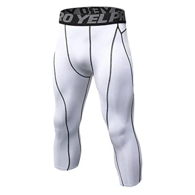 Yuerlian Mens 3/4 Tights Cool Dry Compression Running Leggings Sport Gym Workout Capri Pants White