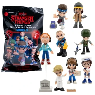 MYSTERY STRANGER THINGS FIGURE: Unveil a surprise Stranger Things Upside Down collectable mini figurine from Series 3; each blind bag hides a 2.5"/6.4cm collectable character with a unique accessory from the hit Netflix show COLLECTABLE FOR PLAY OR DISPLAY: Our high quality & gift-ready Netflix collectable comes in surprise bag; display with your Stranger Things memorabilia, for desks, toy shelves, or imaginative play COLLECT ALL 8 HAWKINS FIGURES: Step into the eerie world of Hawkins by collecting all 8 of our retro 80s mini character figurines; collect Eleven, Max Mayfield, Steve Harrington, Robin Buckley, Jim Hopper, Dustin Henderson, Mike Wheeler & Vecna/Henry Creel GIFT FOR STRANGER THINGS FANS: These Hawkins mini figures make a fun & quirky gift for birthdays, Christmas & special occasions; ideal for Netflix lovers, figure collectors & fans of the iconic Stranger Things series OFFICIALLY LICENSED NETFLIX FIGURE: Our official Netflix collectables merchandise perfectly capture the thrilling series characters in palm-sized form; a must-have for any Stranger Things figure collection