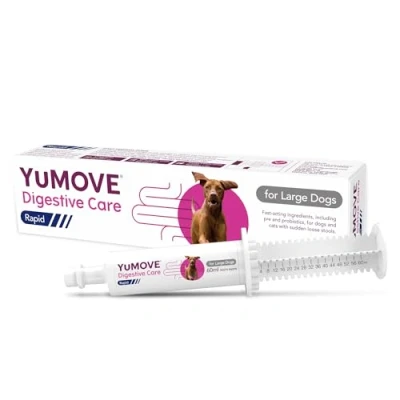 YuMOVE Digestive Care Rapid is a supplement for dogs with fast-acting ingredients to help firm sudden loose stools Our pre and probiotic paste helps firm stools, soothes gut lining and supports recovery after a digestive upset Contains scientifically backed ingredients, like pre and probiotics to support gut health Can be used alongside other YuMOVE Digestive Care products From YuMOVE, the UK’s no.1 veterinary joint supplement brand**
