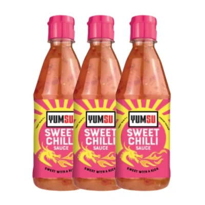 Add bold flavour to every bite with Yumsu Sweet Chilli Sauce, blending mild heat, garlic, and sweetness into one versatile condiment perfect for dipping, drizzling, or cooking.. Classic sweet chilli flavour tangy, sweet, and mildly spicy. 530g bottle – ideal for home cooking or entertaining. Great for dipping, marinades, stir-fries, or grilled dishes. Ready to use – no cooking required. Suitable for most dietary needs – check label for specifics. Resealable bottle – refrigerate after opening