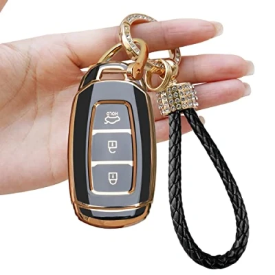 【Custom Design】Compatible with hyundai key cover is specifically customized according to the original car key. The seamless fit design will perfectly fit your key and make your key more beautiful without compromising functional use. TPU key cover is thin and light, designed for daily use. With a shiny white gold keychain, high-end luxury, perfect for use as a gift for your friends and family. 【High Quality Material】The key shell is made of high quality thermoplastic polyurethane TPU material, after three layers of electroplating, with strong color fastness, softer and lighter than ordinary silicone material, non-slip and durable, strong tensile strength, not easy to break. The keychain is made of high quality zinc alloy, fashionable and advanced, smooth and delicate touch, can prevent the loss of car keys. 【Full Protection】Car key fob with 360 degree full coverage, good texture, stylish and elegant appearance, can effectively protect your car keys from scratching, fading, shockproof, anti-drop, not blocking the signal, and better protect the sensitivity of your keys. So our car key protector can not only give your keys a new look, but also extend the service life of your keys. 【Strong Signal Transmission】The high quality TPU silicone material will not block the signal transmission, you can lock/open the door without pulling out the key. The key fob case has a super strong signal transmission, the car can receive the signal quickly, bringing you a faster experience. 【Easy to Install】Our key cases are 1:1 correspondence, easy to install. Simply slide the remote key into the key case and use a screwdriver to bind the key chain and key holder together to complete the installation. The key fob cover is soft and flexible and will not scratch your keys.
