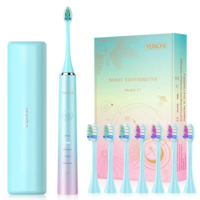 YUNCHI Y7 Electric Toothbrushes for Adults, Rechargeable Sonic Toothbrush with 8 Brush Heads and Travel Case, Blue