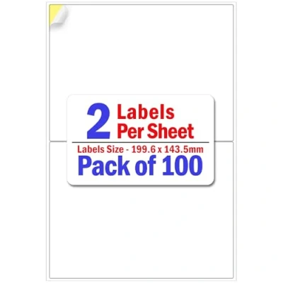 YUNJU 2 Address Labels Per A4 Sheet, 100 Sheets 200 Labels, Self Adhesive Mailing Printer Shipping Label Compatible for Inkjet and Laser Printers, Printable Sticky Sheet Sticker