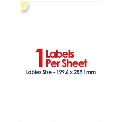 YUNJU A4 Self Adhesive Address Labels, 1 Label Per Sheet, 20 Sheets, (199.6 X 289.1 MM) 20Labels