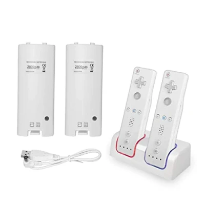Yunseity Remote Battery Charger for Wii, Dual Charging Station Wii/Wii U Controller, Dock with 2 Pack 2800mAh Rechargeable Battery(White)