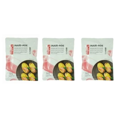 Seasoned tofu pockets for Inari Sushi, suitable for Vegans Fill the cooked and seasoned sushi rice into the pockets and your favourite toppings to make perfect inari sushi. Perfect as a quick lunch, snack or party food. Net weight 180g, Drained weight 100g for each pack Pack of 3. 10 pieces of tofu pockets each pack. Ready to eat. Suitable for vegans. Source of protein.
