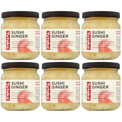PRE-SEASONED PICKLED GINGER — Thinly sliced, sweet-and-mild gari marinated for an authentic palate-cleansing finish between sushi courses or as a bright garnish. VEGAN & PLANT-BASED — Made without animal-derived ingredients; suitable for vegan and vegetarian diets and perfect for plant-forward menus. CLEAN, BALANCED FLAVOUR — Lightly pickled with a subtle sweet-sour balance that refreshes the palate without overpowering delicate fish or rice flavours. CONVENIENT MULTI-PACK — Six 190g jars provide excellent value for sushi nights, parties, or foodservice use; ready to use straight from the jar. TRUE TASTE OF JAPAN — Yutaka means “good harvest.” Explore the rich variety of Japanese cuisine with our authentic ingredients, inspiring recipes, and bold flavours to discover at every meal.
