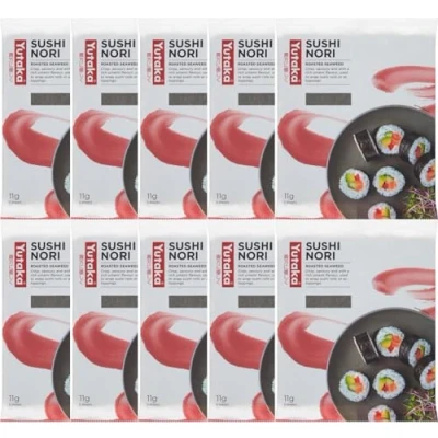 PREMIUM ROASTED SUSHI NORI – Yutaka Sushi Nori is carefully roasted to preserve authentic Japanese flavour, texture, and aroma, providing high-quality seaweed for sushi and culinary creations. VERSATILE CULINARY USES – Ideal for sushi rolls, hand rolls, onigiri, rice bowls, salads, or as a healthy snack, adding natural umami and subtle oceanic taste. CONVENIENT PACKAGING – Includes 50 full sheets across 10 packs, ensuring freshness and easy storage while providing ample supply for home or professional kitchens. EASY TO USE – Ready to use straight from the pack; perfect for creating perfectly rolled sushi or enhancing your Japanese dishes effortlessly. TRUE TASTE OF JAPAN – Yutaka means “good harvest.” Explore authentic Japanese cuisine with our premium ingredients, inspiring recipes, and bold flavours in every sheet.