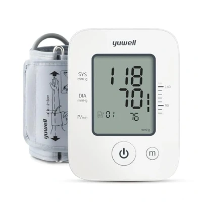 【High Accuracy】: Backed by 26 years of medical device expertise, the yuwell YE670A is CE certified and meets ESH & AAMI standards. It integrates our proprietary DFFA Algorithm and an advanced SOC chip, refined through tens of thousands of clinical data acquisitions to ensure accurate measurement with a tolerance of just ±3mmHg. 【Super Easy to Use】The yuwell BP Monitor YE660D features a one-touch operation system, making it simple and intuitive for all ages, minimizing the risk of misoperation 【Comfortable Cuff】The soft, wide-range upper arm cuff fits arm circumferences from 22 to 45 cm, providing a comfortable measurement experience. Intelligent pressurization technology reduces discomfort and tension caused by excessive inflation 【90 Memory Storage】Capable of storing 90 blood pressure records, allowing you to track your health conveniently. It also calculates the average of the last three measurements for more accurate readings 【AT-HOME Monitoring】: yuwell blood pressure machine features a hypertension indicator and irregular heartbeat alert. The package includes everything you need: monitor, arm cuff, USB cable, 4x AA batteries, manual, and storage bag.