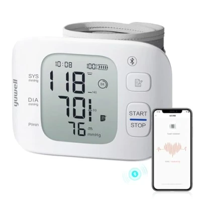 【Smart Pressure Control & Precise Measurement】: yuwell Wrist Blood Pressure Monitor is equipped with an upgraded SOC chip and validated by 10,000+ clinical datasets, ensuring high-grade accuracy for reliable health monitoring. Automatic inflation adjustment adapts to your arm pressure in real-time, delivering consistent results 【Rechargeable & Travel-Friendly】: Featuring a built-in lithium battery, a 2.5-hour charge provides 250 measurements or 90 days of standby time, eliminating the need for frequent battery replacements. Weighing only 109g, its compact design fits easily into your bag, making it ideal for home use, travel, or business trips 【Ergonomic & Comfortable Design】: The adjustable wrist cuff fits wrist sizes 5.32 to 7.68 inches (13.5-19.5 cm), ensuring a snug yet comfortable fit. Its integrated body and wristband design conforms to the natural curve of the wrist, offering both aesthetic appeal and user comfort. 【Bluetooth Connectivity & Voice Broadcast】: Real-Time Blood Pressure Tracking: Sync your measurements to your smartphone via Bluetooth, allowing you to monitor your blood pressure anytime, anywhere. Intelligent Voice Reporting: announces results audibly in real-time, perfect for elderly users 【Intelligent Health Monitoring & Memory Storage】: Monitor your health effortlessly with the yuwell wrist blood pressure machine YE8800AR – advanced technology, portability, and smart features in one compact device. Package Includes: 1 x Wrist Blood Pressure Monitor, 1 x Adjustable Wrist Cuff, 1 x USB Charging Cable, 1 x Travel Case, 1 x User Manual and 1 x APP quick guidance