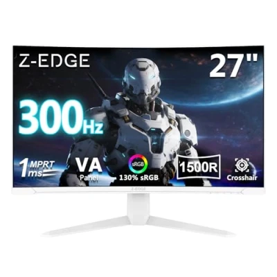 Z Edge 27 Inch 300Hz Curved Gaming Monitor 1ms MPRT Full HD 1080P, 300cd/m² Brightness, 16:9 VA Panel, FreeSync, HDR10, DisplayPort (300Hz) & HDMI (240Hz), VESA Mountable, White