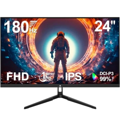 180Hz & 1ms MPRT - This monitor is born for gaming, the gaming monitor delivers rapid 1ms response time and 180Hz refresh rate, ghosting and motion blur will be dramatically reduce, bringing unprecedented smoothness and fluidity to your games and action movies. Please make sure the graphics card of your computer supports 180Hz refresh rate. Full HD & IPS Panel - FHD resolution (1920x1080) delivers crystal-clear picture quality. With the high-end IPS panel, the monitor enlarges the viewing angle to a greater extend, providing the 178° wide viewing angel, making it easy to share work or content. The IPS panel ensures the consistent accurate and vivid color of the video and images from all viewing angles. Powerful Connections - Featuring with one HDMI and one DisplayPort input ports, you can connect multiple devices to the monitor for multitasking. FreeSync technology can eliminate screen tearing, shuddering and input lag, presenting you the exceptional gaming experience. Clear & Realitic Colors - The monitor can display 16.7 million colors. The 16:9 aspect ratio allows you to enjoy videos and images in the usual format. Whether you're playing games or watching movies, the contrast ratio of 5000:1 allows the eyes to capture contours more sharply, making the image more precise. Eye-Care & HDR10 Compatible - Flicker free and low blue light features reduce eye fatigue after prolonged use. HDR technology supports HDR10 format to enhance bright and dark areas, making game scenes more vivid than ever. Gamer can therefore enjoy higher brightness,as well as deeper shadows and crisp contours.