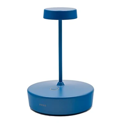 MODERN AND ELEGANT DESIGN: Designed according to eco-design principles, Swap Mini adapts to all interior styles. The structure is made of painted aluminum in Capri blue colour, polycarbonate diffuser, and LED light source TOUCH CONTROL: Thanks to the touch control on the lower part of the head, you can easily turn on/off the lamp and adjust the brightness RECHARGEABLE AND REPLACEABLE BATTERY: Recharging the Swap Mini lamp is very simple, just place it on the contact charging base. Battery lasts for at least 13 hours, and the 1A charging time is 6 hours BATTERY CHARGE MONITORING: Thanks to the electronic control system, the lamp monitors and indicates the remaining battery power, allowing for optimized recharges and ensuring always correct and safe usage to avoid overloads ALSO SUITABLE FOR OUTDOOR USE: Enjoy an evening with friends, a dinner, or reading a good book thanks to Swap Mini. With a high protection rating (IP65), this cordless lamp can also be used outdoors