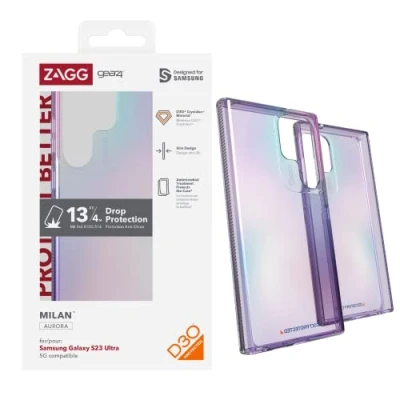 ZAGG Gear4 Milan D30 Protective Case for Samsung Galaxy S23 Ultra, 6.8in, Sleek, Slim, Shockproof, Scratch Resistant, Solid Grip, Wireless Charging, (Aurora Transparent)
