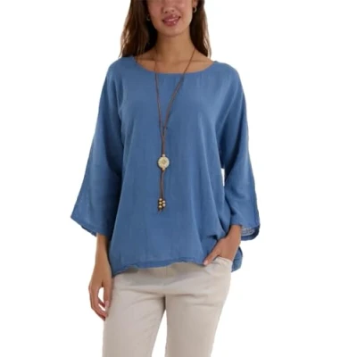 IDEAL FOR EVERY OCCASION: This a perfect choice for casual, shopping, date, street, office, work, basic, party, outdoor, and daily wear that make you look charming and cool all day long. Fashionable Design: Stay on-trend with this lagenlook Italian top featuring 3/4 sleeves, a round neck, and a stylishly baggy look, perfect for summer fashion statements. Versatile Sizing: One size fits UK (8-18), providing a comfortable and flexible fit for a range of body types, with approximate measurements ensuring a flattering silhouette. FEATURES: This lagenlook Italian top is made in a way to be skin-friendly and breathable while you wear it. Lovely, So-In-Trend, 3/4 Sleeves, Round neck & Baggy Look Summer Fashion top. Premium Quality Material: Crafted from 100% cotton, this blouse is exceptionally soft and lightweight, offering superior comfort for all-day wear. The fabric is of high quality, ensuring durability and a luxurious feel.