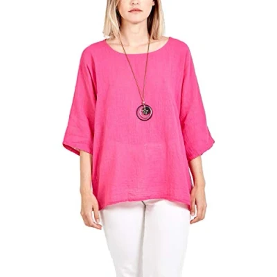 IDEAL FOR EVERY OCCASION: This a perfect choice for casual, shopping, date, street, office, work, basic, party, outdoor, and daily wear that make you look charming and cool all day long. Fashionable Design: Stay on-trend with this lagenlook Italian top featuring 3/4 sleeves, a round neck, and a stylishly baggy look, perfect for summer fashion statements. Versatile Sizing: One size fits UK (8-18), providing a comfortable and flexible fit for a range of body types, with approximate measurements ensuring a flattering silhouette. FEATURES: This lagenlook Italian top is made in a way to be skin-friendly and breathable while you wear it. Lovely, So-In-Trend, 3/4 Sleeves, Round neck & Baggy Look Summer Fashion top. Premium Quality Material: Crafted from 100% cotton, this blouse is exceptionally soft and lightweight, offering superior comfort for all-day wear. The fabric is of high quality, ensuring durability and a luxurious feel.