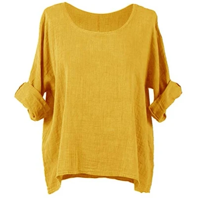 Zaif & Hari Ladies Italian Plain Lagenlook Batwing Cotton Linen Lightweight Casual Short Tunic Blouse TOP (One Size 8 18, Mustard)