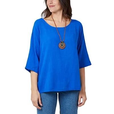 IDEAL FOR EVERY OCCASION: This a perfect choice for casual, shopping, date, street, office, work, basic, party, outdoor, and daily wear that make you look charming and cool all day long. Fashionable Design: Stay on-trend with this lagenlook Italian top featuring 3/4 sleeves, a round neck, and a stylishly baggy look, perfect for summer fashion statements. Versatile Sizing: One size fits UK (8-18), providing a comfortable and flexible fit for a range of body types, with approximate measurements ensuring a flattering silhouette. FEATURES: This lagenlook Italian top is made in a way to be skin-friendly and breathable while you wear it. Lovely, So-In-Trend, 3/4 Sleeves, Round neck & Baggy Look Summer Fashion top. Premium Quality Material: Crafted from 100% cotton, this blouse is exceptionally soft and lightweight, offering superior comfort for all-day wear. The fabric is of high quality, ensuring durability and a luxurious feel.