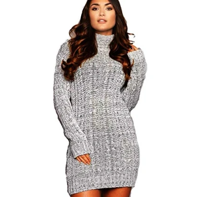 Zaif & Hari® Ladies Womens Long Sleeve Polo Neck Cable Knitted Jumper Dress Top Plus Size UK 8 22 (S/M (UK8 10), Grey)