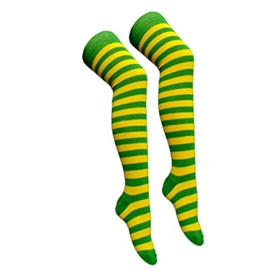 Zaif & Hari® New Ladies Girls Stripe Stripy Striped Over The Knee Thigh High Long Socks Assorted Colours (Green/Yellow Stripe)