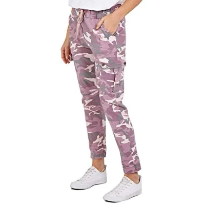 Zaif & Hari New Women's Ladies Cargo Pocket Super Stretch Army Camouflage Print Joggers Magic Trousers Pants (16 18, Pink)
