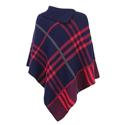 Zaif & Hari Woman Coller 3 Buttons Cape Shawl Wrap Cabel Knitted Sweater Jumper Ladies Poncho One Size 8 26 (One UK(8 26), Navy Tartan Print)