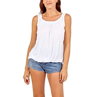 Zaif & Hari Women Vest Top Loose Fit Elasticated Waist Sleeveless Casual Summer Tank T Shirt Blouse (12 14, White)