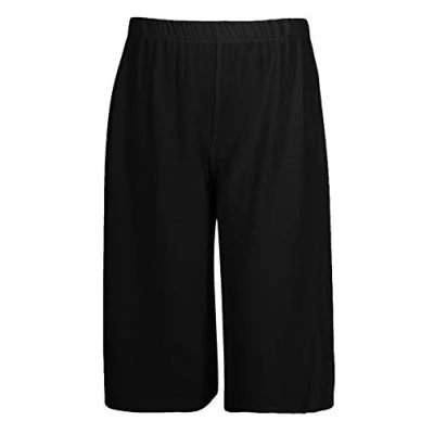 Zaif & Hari Women Wide Leg Culottes 3/4 Short Pants Casual Ladies Loose Capri Trousers (UK 24 26, Black)