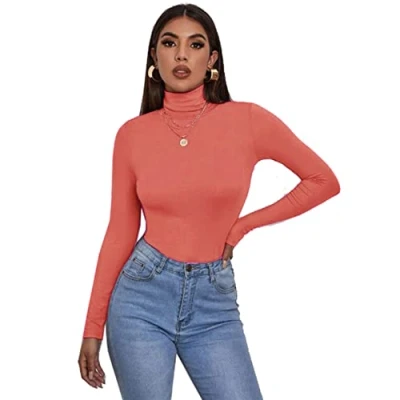 Zaif & Hari® Womens Plain Long Sleeves Polo Neck Top Ladies Turtle Roll Jumper Size 8 26 Coral 8/10