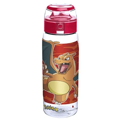 25-ounce water bottle with flip-top leak-proof lid and built-in carrying loop featuring Pokemon graphics Easy-open flip top cap locks into place when open and is spill-proof when closed; wide mouth easily accommodates ice cubes Fits in most car cup holders; measures 9.5" high and 3" in diameter Made of BPA-free, durable, shatter-proof, break resistant Tritan plastic Dishwasher safe top rack; do not microwave, Weight: 0.3 Pounds, Manufacturer: Zak Designs