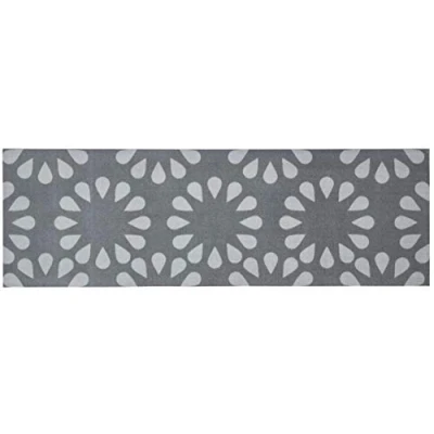 A modern kitchen runner that can be combined with different interior styles and sets a special accent in your kitchen Not only an eye-catcher, but also very practical. High-quality workmanship made from 100% polyamide ensures durability, durability and easy care A non-slip nitrile rubber backing prevents slipping even on smooth floors. The runner can also be easily laid out in all rooms with underfloor heating. Care instructions: vacuuming runners regularly. For cleaning the waste, we recommend a standard carpet foam, or hand wash at 30 degrees. Technical data: material: 100% polyamide; total height: approx. 5 mm. Total weight: approx. 2200 g/m². Country of origin: Belgium. Box contents: Zala Living Bloom washable kitchen runner, 50 x 150 cm, 100% polyamide, non-slip, suitable for underfloor heating, grey