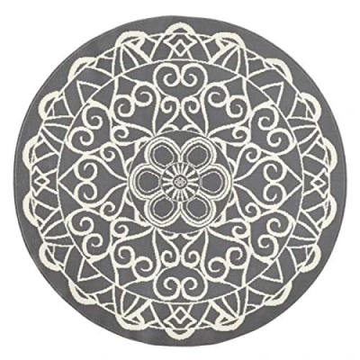 Zala Living Capri Mandala Round Room Rug Short Pile Modern Boho Design Vintage for Kitchen, Hallway, Dining Room, Bedroom Grey, 140 cm