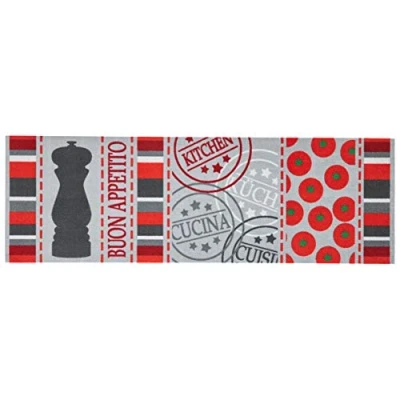 Zala Living Cook & Clean Runner Non Slip Rug Flat Weave Short Pile Kitchen Washable Buon Appetito for Hallway, Kitchen, Room Grey Red, 50 x 150 cm