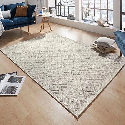 Zala Living Harmony Indoor and Outdoor Rug 155 x 230 cm Flat Weave Weatherproof Modern Design Macrame Look for Balcony Patio Conservatory Kitchen Dining Room Waterproof in Cream