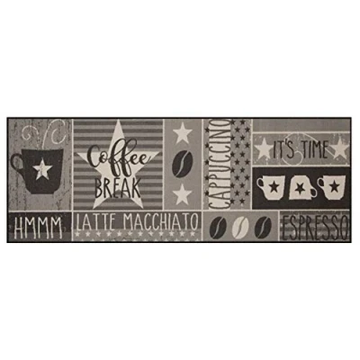 Zala Living Vibe Runner Kitchen Non Slip Rug Flat Weave Short Pile Washable "Coffee Break" for Hallway, Kitchen, Room, Bathroom, Bathroom Grey, 180 x 67 cm