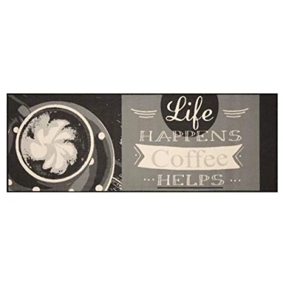 Zala Living Vibe Runner Kitchen Non Slip Rug Flat Weave Short Pile Washable Life Happens for Hallway, Kitchen, Room, Bathroom, Bathroom Grey, 180 x 67 cm