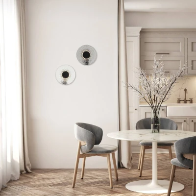Lighting concept for living ambience: LED wall light made of glass Experience the transformative power of light with our LED wall light, which impresses with its round glass design and a warm colour temperature of 3,000 Kelvin. The integrated LED light source not only provides energy-saving lighting, but also creates a pleasant atmosphere in various rooms such as the living room, dining room or hallway. Let the elegance and functionality of this light convince you and bring a new lighting experience into your home.