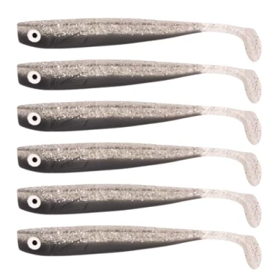 Zanderbait 12 cm smoke glitter, fishing lure, artificial bait, zander soft rubber fish, pack of 6