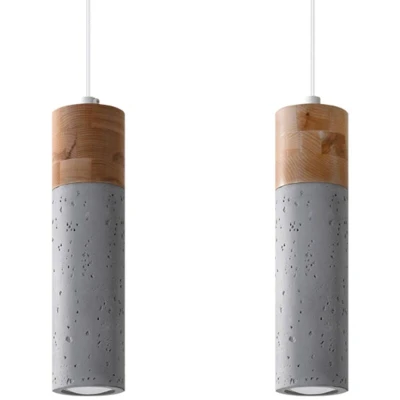 General description This small and narrow pendant lamp, ZANE, impresses with its simple shape and consistent colors. It pairs beautifully with minimalist loft-style decor, making it a versatile choice for various interior designs. Available in versions with 1, 2, or 3 light points, ZANE is suitable for both smaller spaces like bathrooms and larger areas such as dining rooms. Crafted from high-quality materials, including concrete and wood, this lamp is designed for longevity. Technical specifications Light source: GU10, 2x max 10W LED Voltage: ~230V Frequency: 50Hz IP rating: IP20 Protection class: I Dimensions: 30 cm (length) x 6 cm (width) x 120 cm (height) Dimensions of the shade: 7 cm (diameter) x 28 cm (height) Material: concrete, wood Color: gray, natural wood Other information Light source is not included.