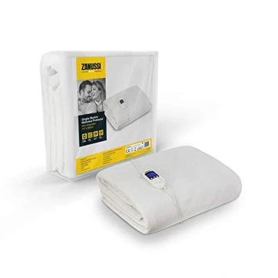 Zanussi Single Electric Blanket Mattress Protector 9 Heat Settings, Low Energy & Efficient, Machine Washable, Overheat Protection, 107 X 203 cm, 60W, White ZESB7001, 2 Year Guarantee