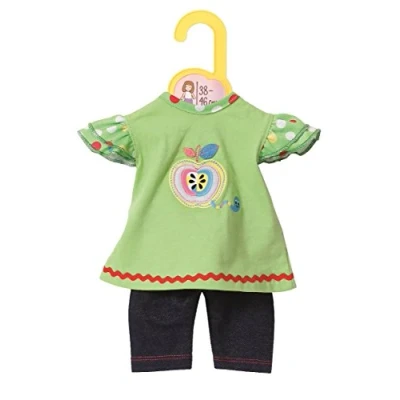 Dolly Moda - This is clothes for dolls of different sizes. From sporty to elegant, from large to small, there is an outfit for every doll body and fashion taste The Dolly Moda shirt with leggings fits BABY born and Baby Annabell and other dolls with a size of 39-46 cm Ideal addition to the classic role play: playfully encourages imagination and has been proven to support the development of social skills Easy to put on and take off - even with small children's hands Cute look with apple design, colourful dots and fresh colours, Manufacturer: MOLEO Sp.z o.o.