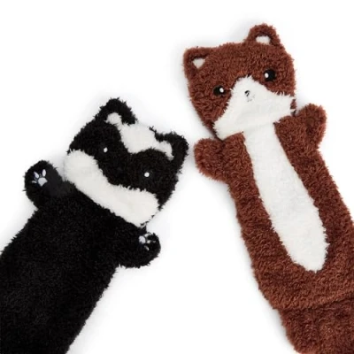 Zappi Co Squeaky Crinkle No Stuffing Dog Toys (2 Pack: Fox & Skunk) Durable Plush Chew Toy for Small, Medium Dogs